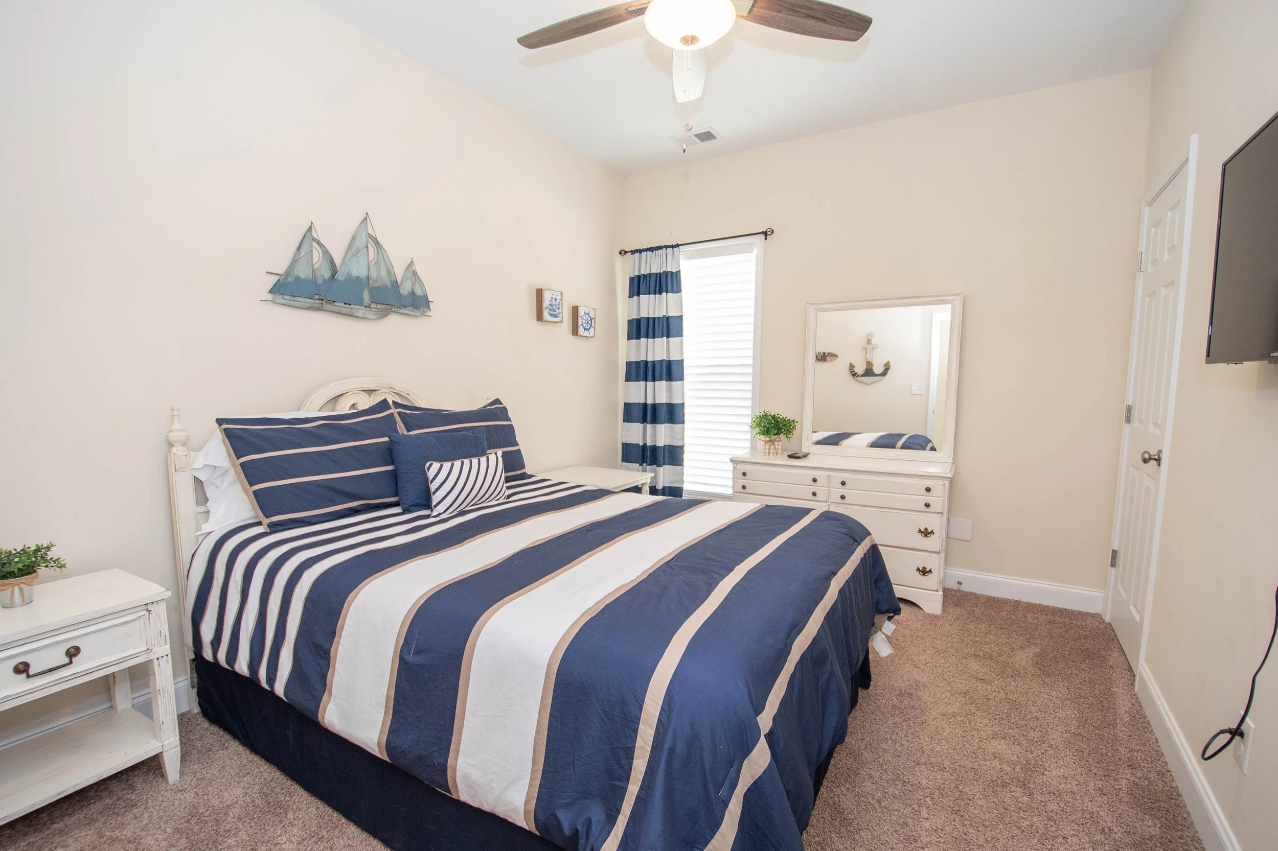 House #1 is a single story, 3-bedroom/2-bath open concept beauty with partial lake views, lake access via the common area that includes the sandy beach with covered deck, kayaks, paddleboats, canoe, boathouse with covered pavilion, docks, boardwalk, picnic areas with firepits and BBQ grills. This house is a few more steps to the lake, but comes with a lower price. This home is ideal for families with small children as there is a large grassy play area directly in front of the house. It’s a great house with all the spectacular amenities and accommodates up to 8 guests.